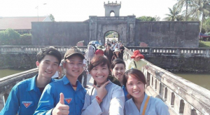 Tuấn ( ngoài cùng bên trái) trong màu áo xanh tình nguyện
