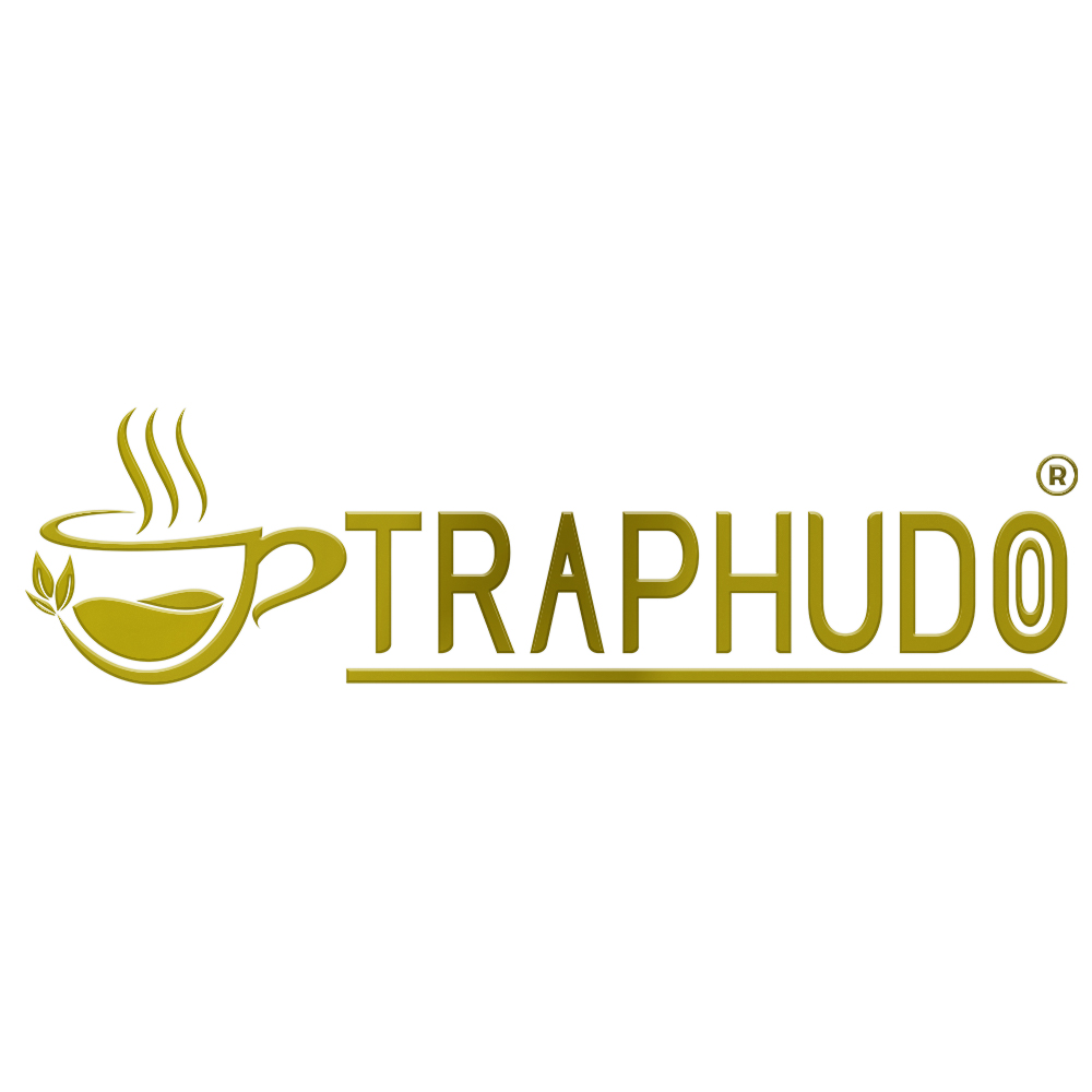 Logo, nhãn hiệu “TRAPHUDO” gồm phần chữ và phần hình, mang màu ánh kim trên nền trắng.